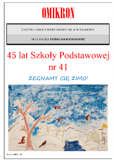 Szkoła podstawowa numer 41 im. Jana Kochanowskiego w Krakowie już od ponad 40 lat realizuje program nauczania i pomaga dzieciom rozwijać swoje zdolności. Kształcimy i przygotowujemy do dalszej edukacji na poziomie liceum. Dzieci oprócz odbierania podstawowego wykształcenia, mają także możliwość uczestniczenia w wielu zajęciach pozalekcyjnych i sportowych. Organizujemy wiele spotkań integrujących uczniów, rodziców i nauczycieli – to szkoła bliska Tobie!