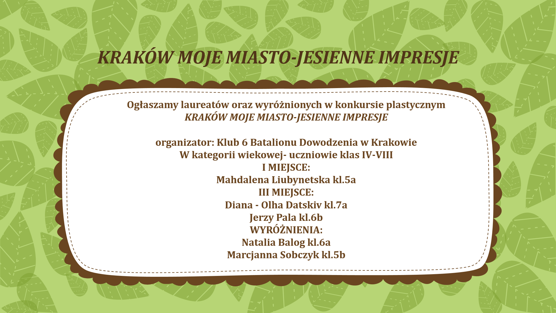 Julia Góralczyk z klasy 8C otrzymała wyróżnienie (laureatka III miejsca) w Ogólnopolskim Konkursie Nauk Przyrodniczych Świetlik